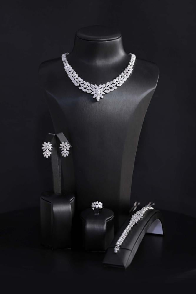 طقم إكسسوارات نسائي لون فضي ملكي بتصميم أنيق