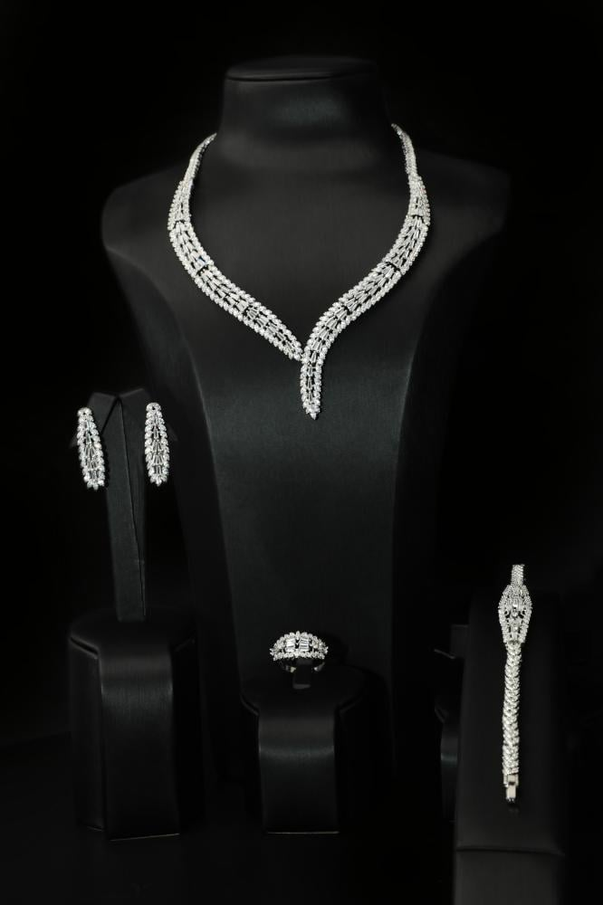 طقم إكسسوارات سهرة فضي فاخر بتصميم راقي