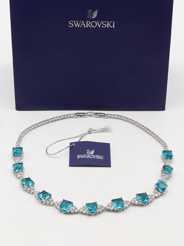 •  أضف لمسة من الأناقة الكلاسيكية إلى إطلالتك مع عقد سلسال سواروفسكي بيق بلو سكوير ستونز.
