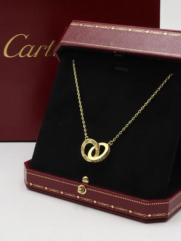 • أضف لمسة من الأناقة الكلاسيكية إلى إطلالتك مع سلسال كارتير دبل رينقز لوقو كبير.